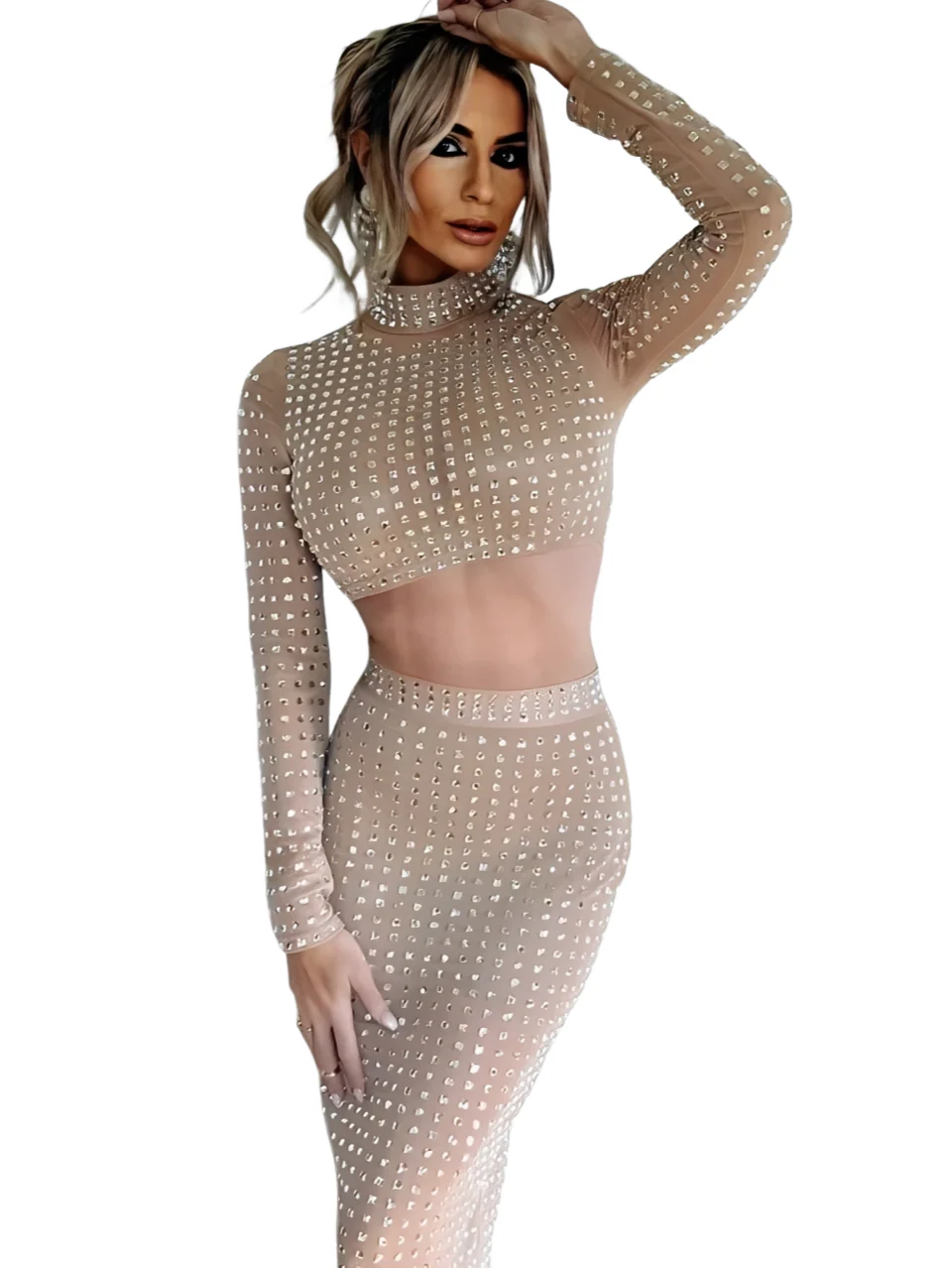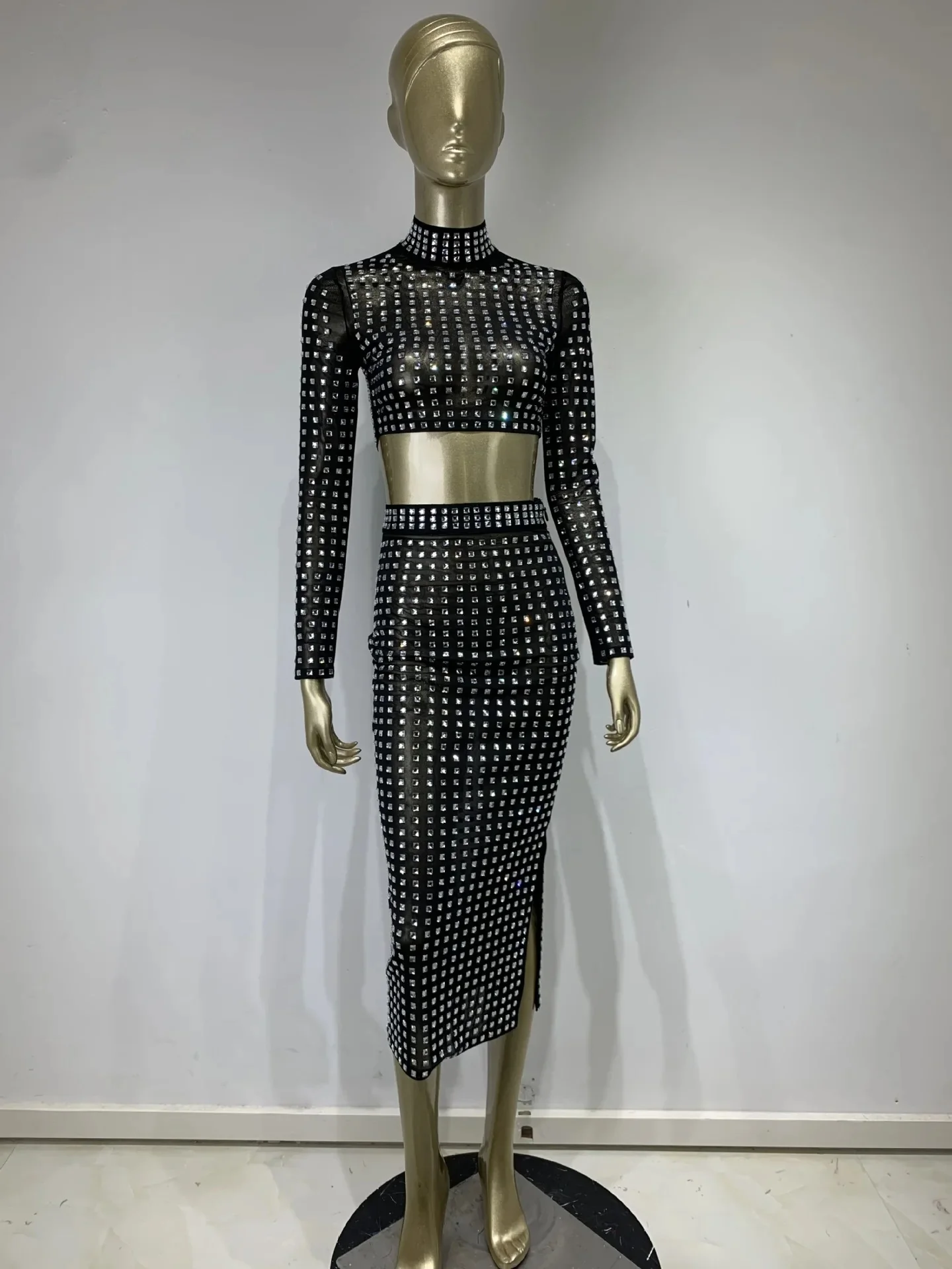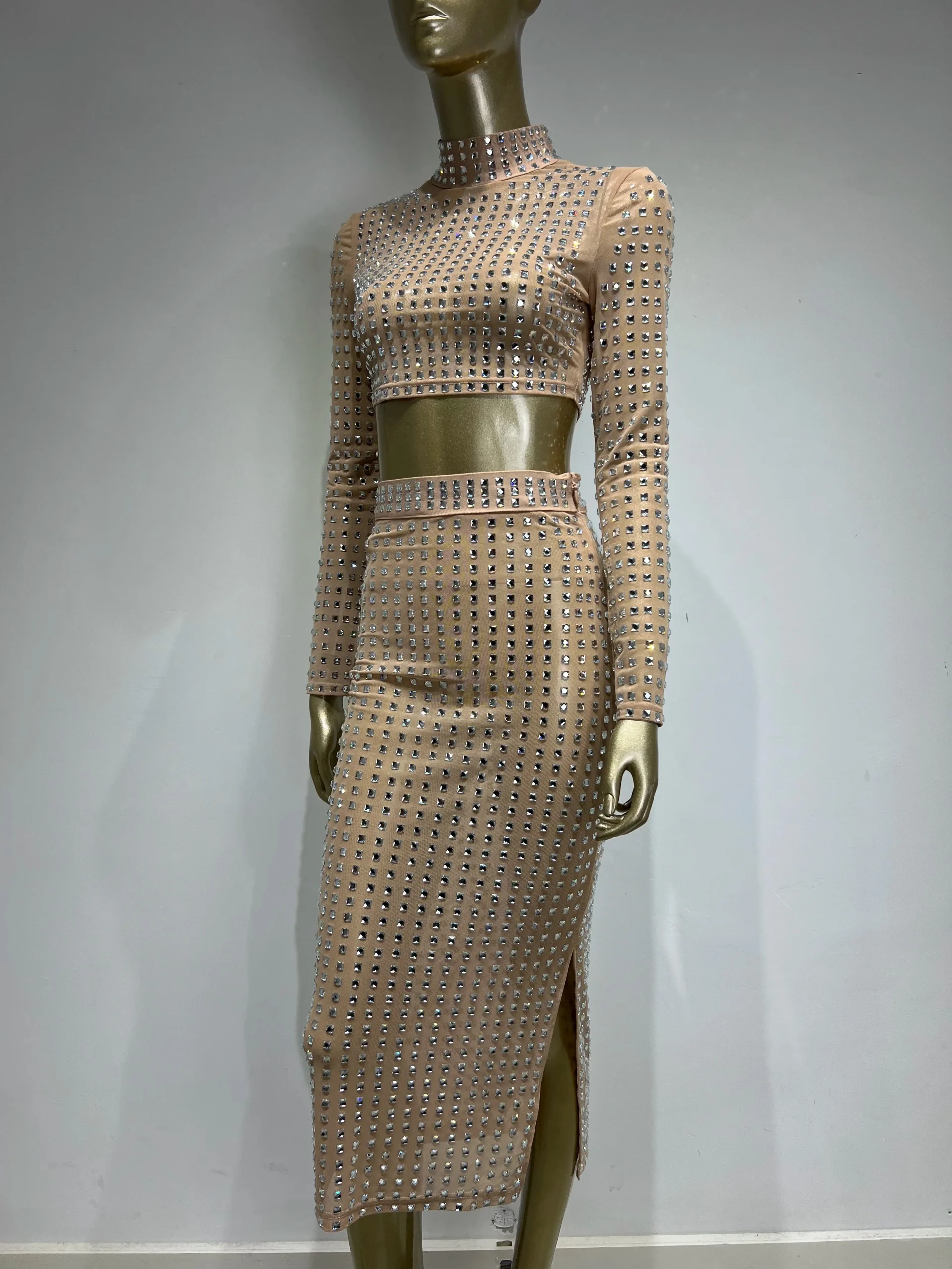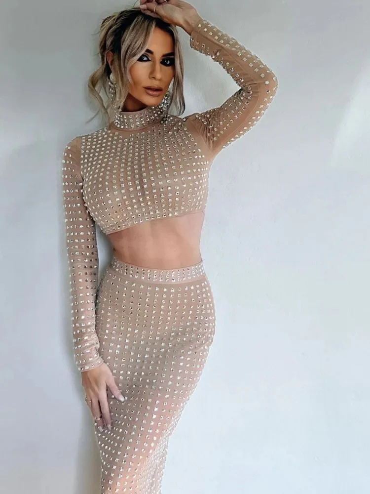 AVP PASSION: Crystal Mesh Two-Piece Skirt Set