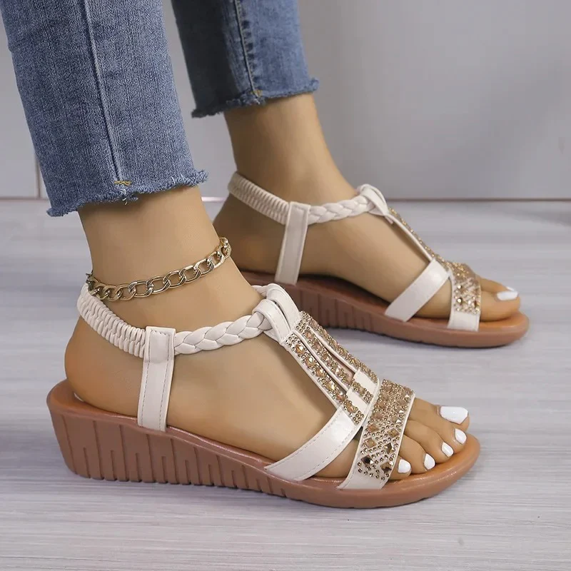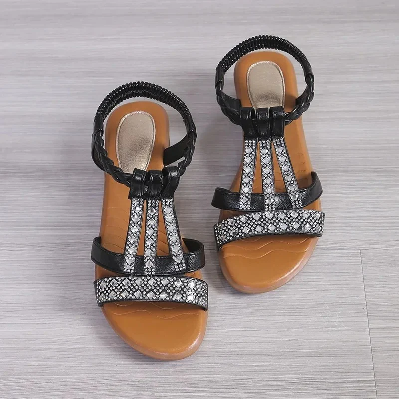 AVP PASSION: Rhinestone Elastic Gladiator Sandals
