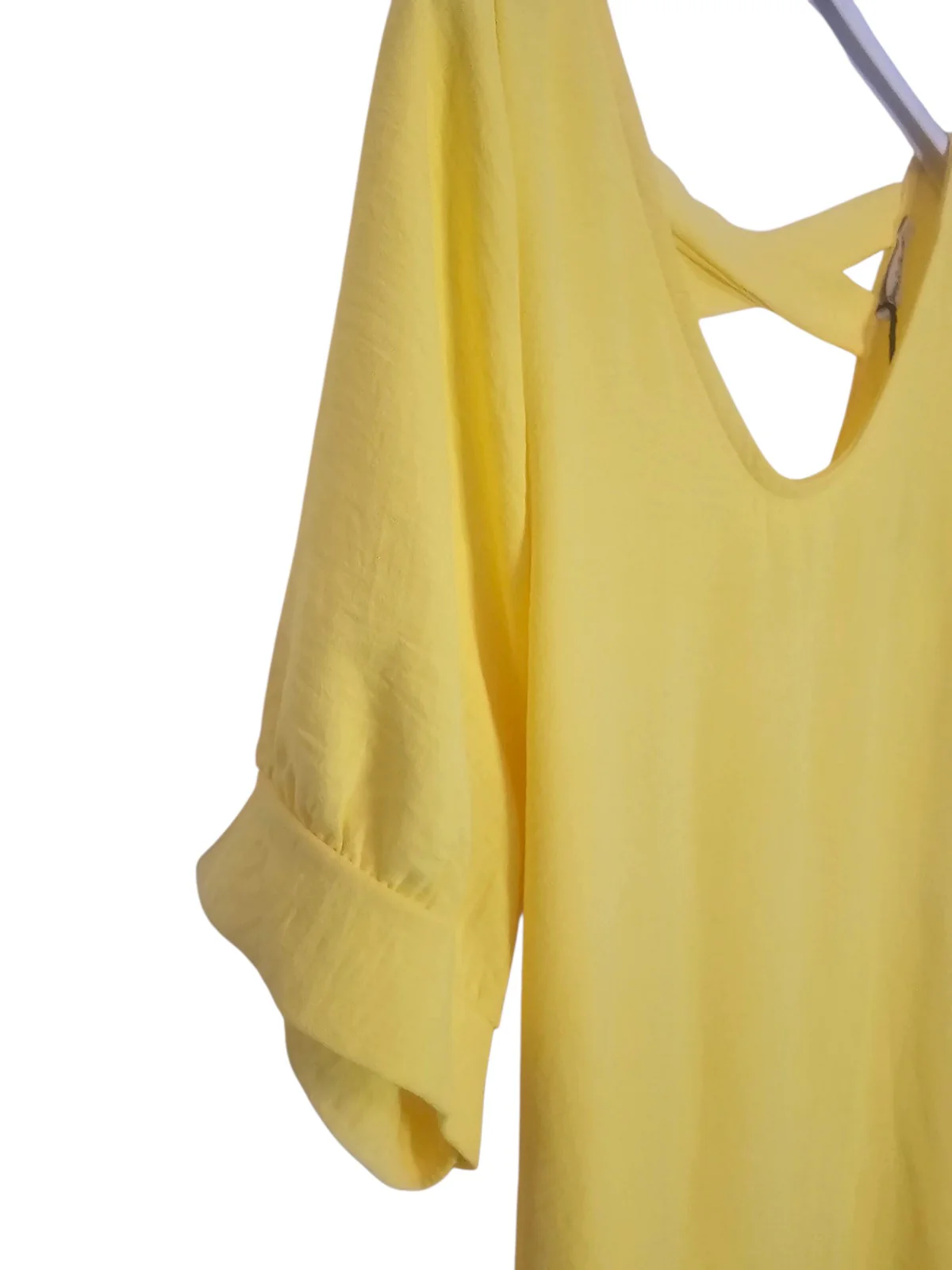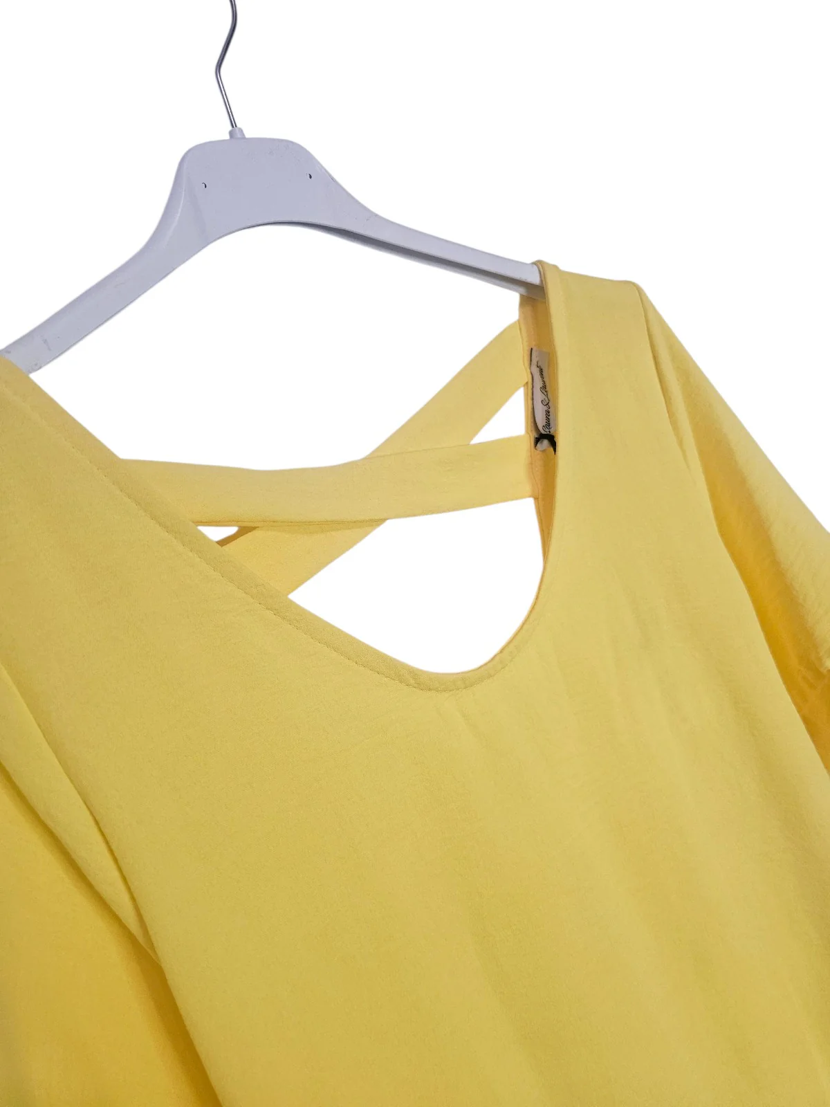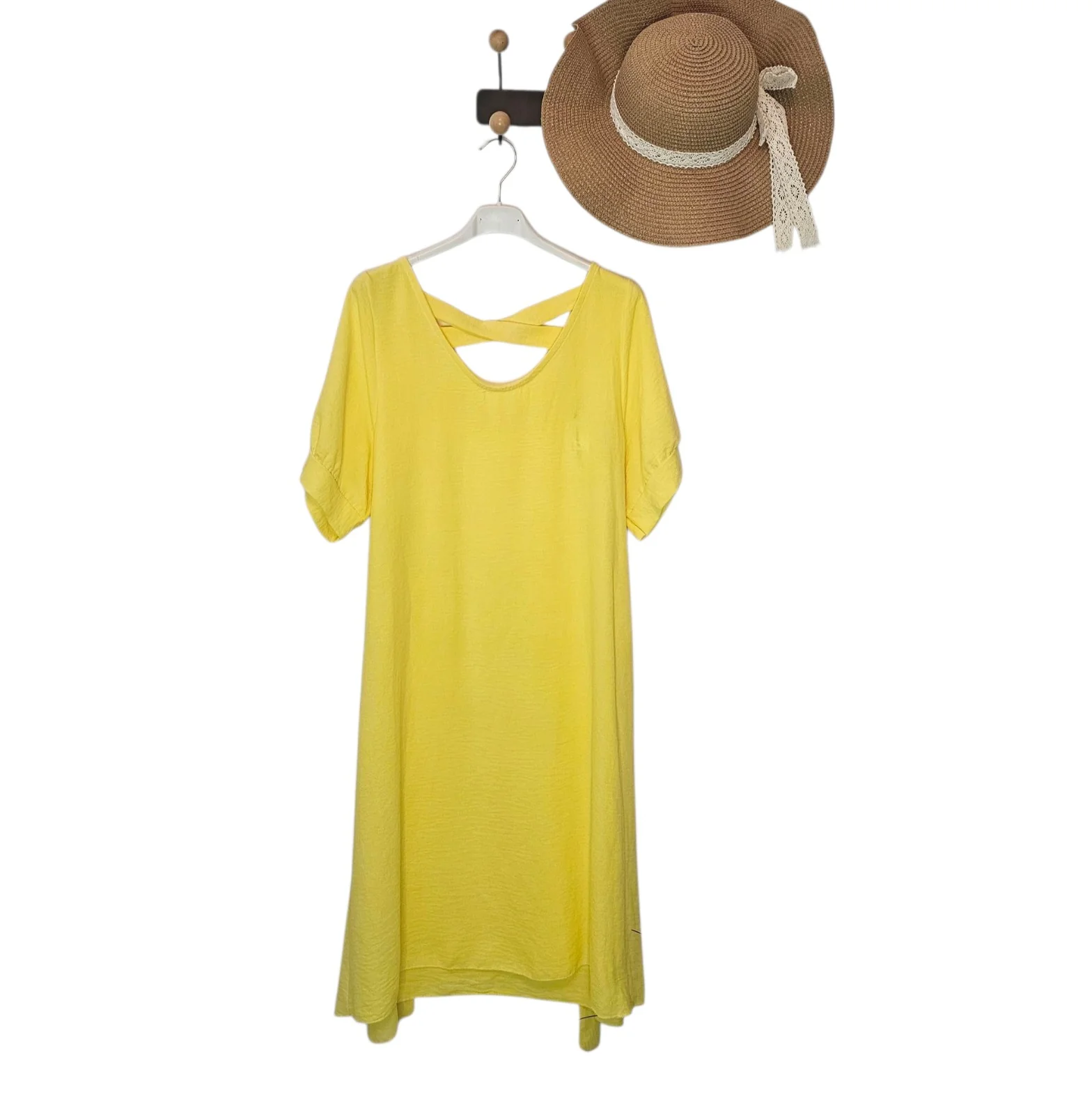 AVP PASSION-Robe Jaune Fluide Femme avec Ceinture – Taille Unique – Dos Croisé