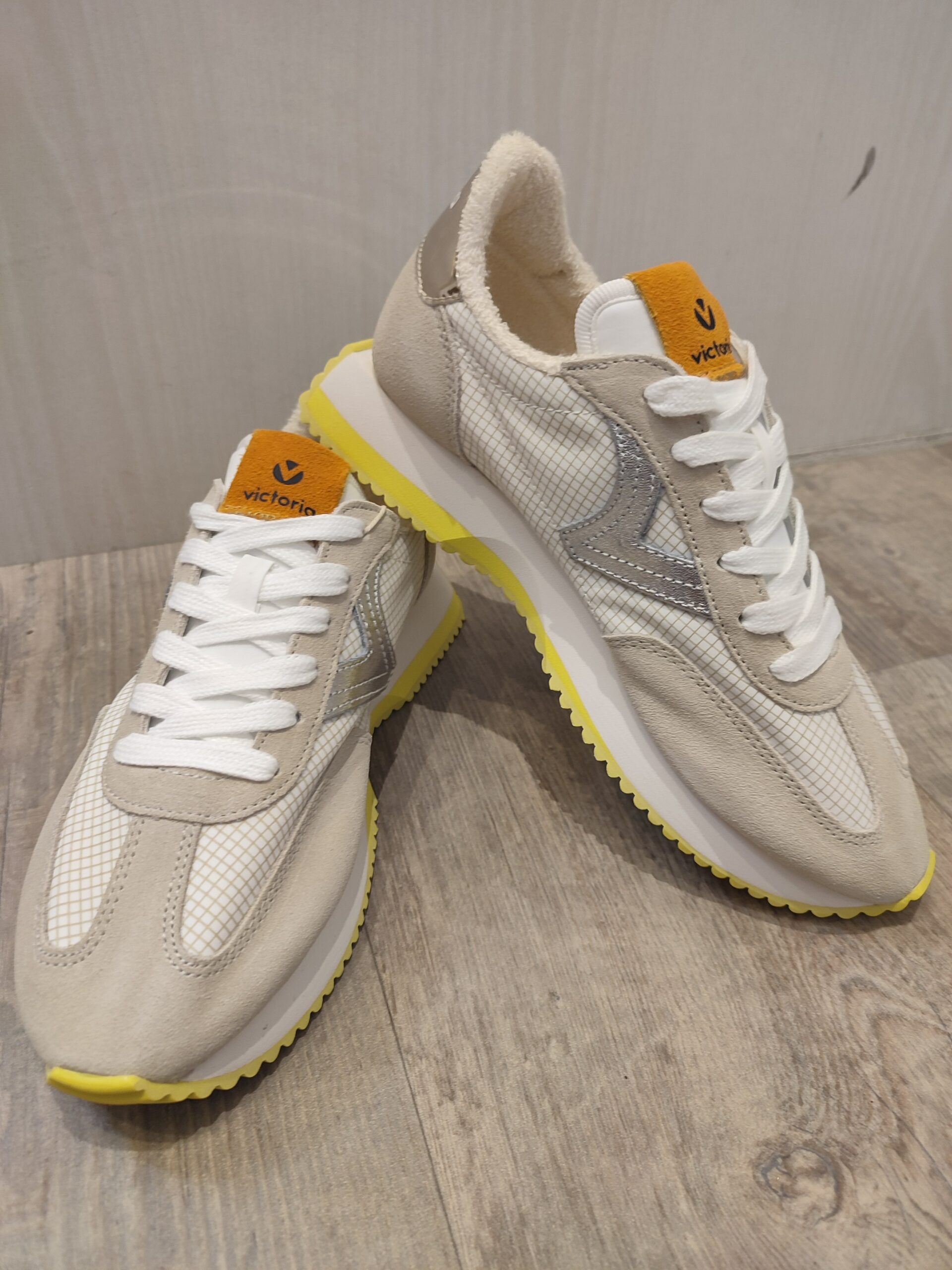 Baskets de la marque VICTORIA. Légère et confortable. Pièces en cuir et tissu. Maille en polyester respirant.