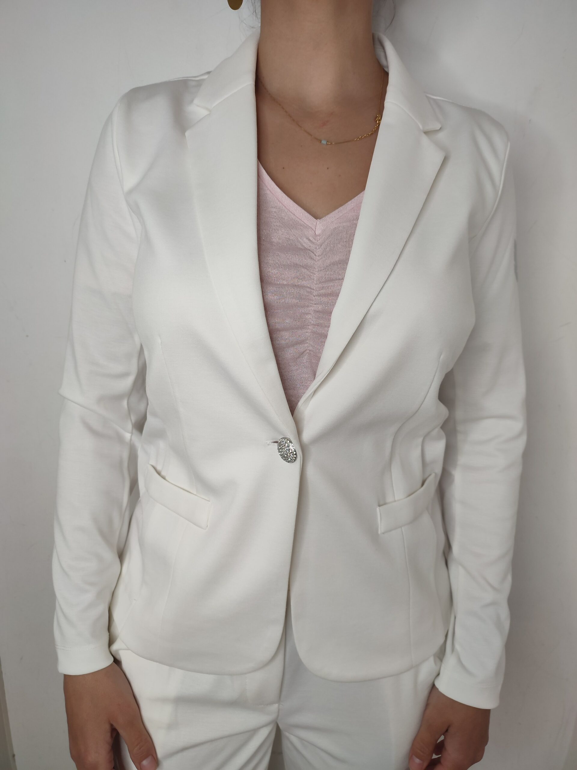 Blazer ANNE de la marque LPB. Coupe cintré. Fermeture avec bouton. Deux fausses poches. Cette pièce vous sera très vite indispensable!! Soit en modèle sportswear avec le pantalon ALEXANDRA et des sneakers, soit plus working girl avec des talons! Le modèle mesure 1m59 et porte la taille S. Composition et entretien: 60% Viscose. 35% Nylon. 5% Élasthanne. Consulter l’étiquette avant lavage.