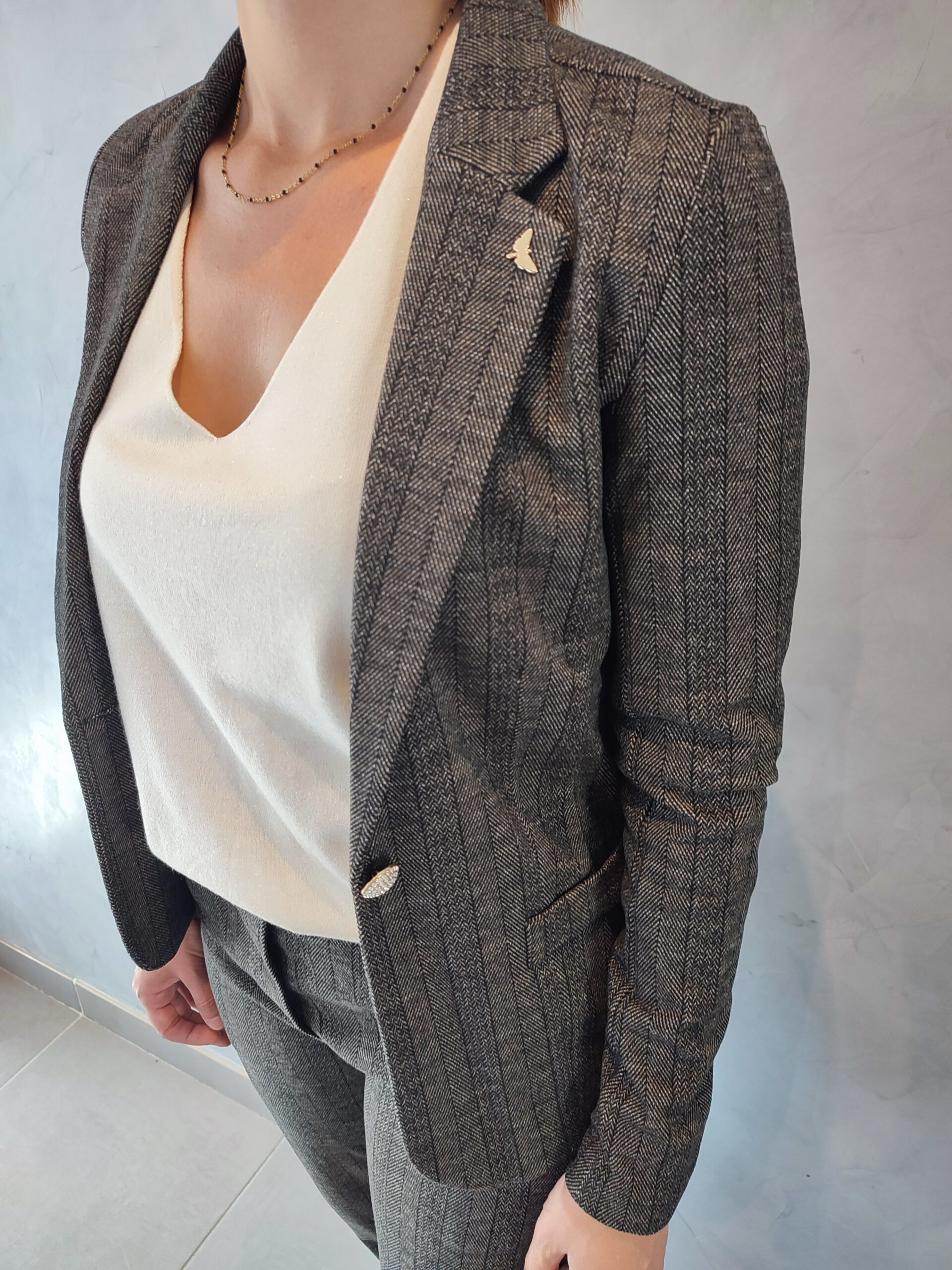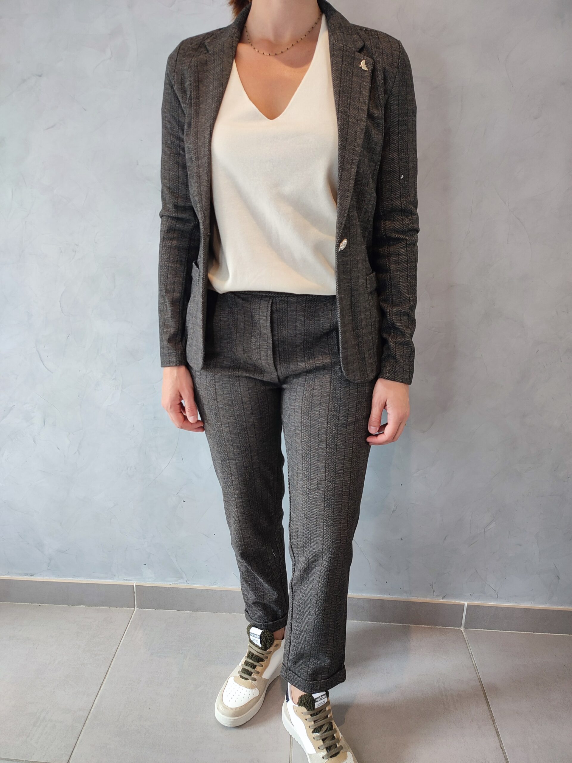 Blazer ANNE de la marque LPB. Coupe cintré. Fermeture avec bouton en strass. Deux fausses poches. Imprimé à carreau. La couleur INVERNESS correspond au modèle plus foncé, la couleur GLASCOW correspond au modèle plus clair. Le modèle mesure 1m63 et porte la taille S. Composition et entretien: 75% Polyester. 22% Viscose. 3% Elasthanne. Consulter l’étiquette avant lavage.