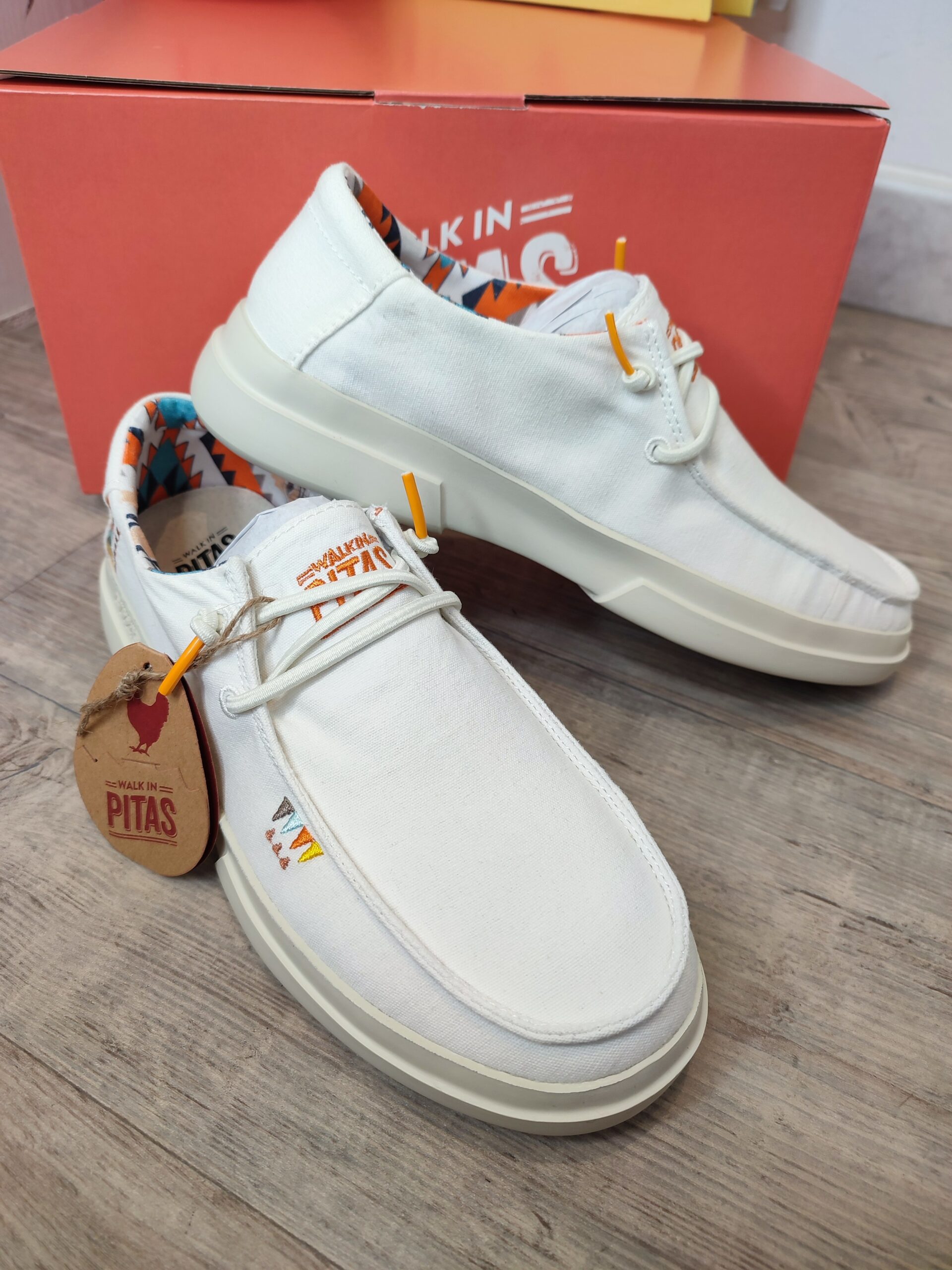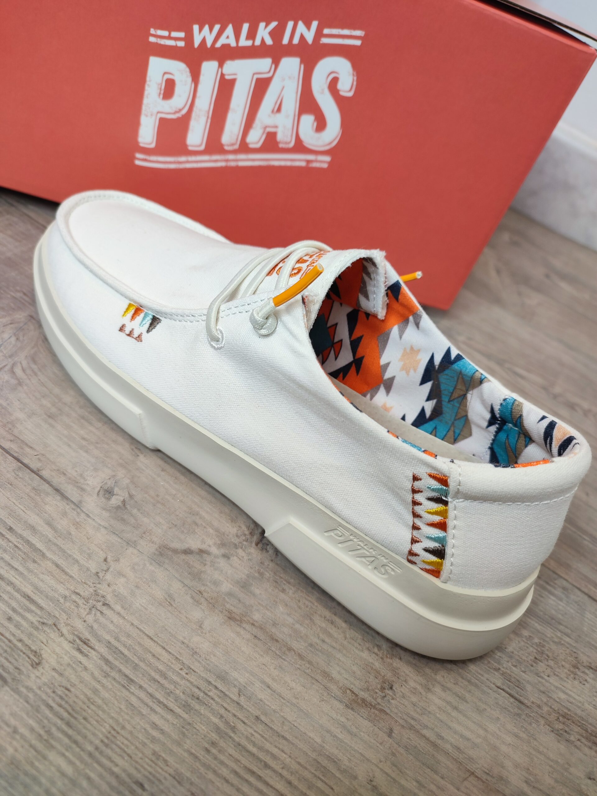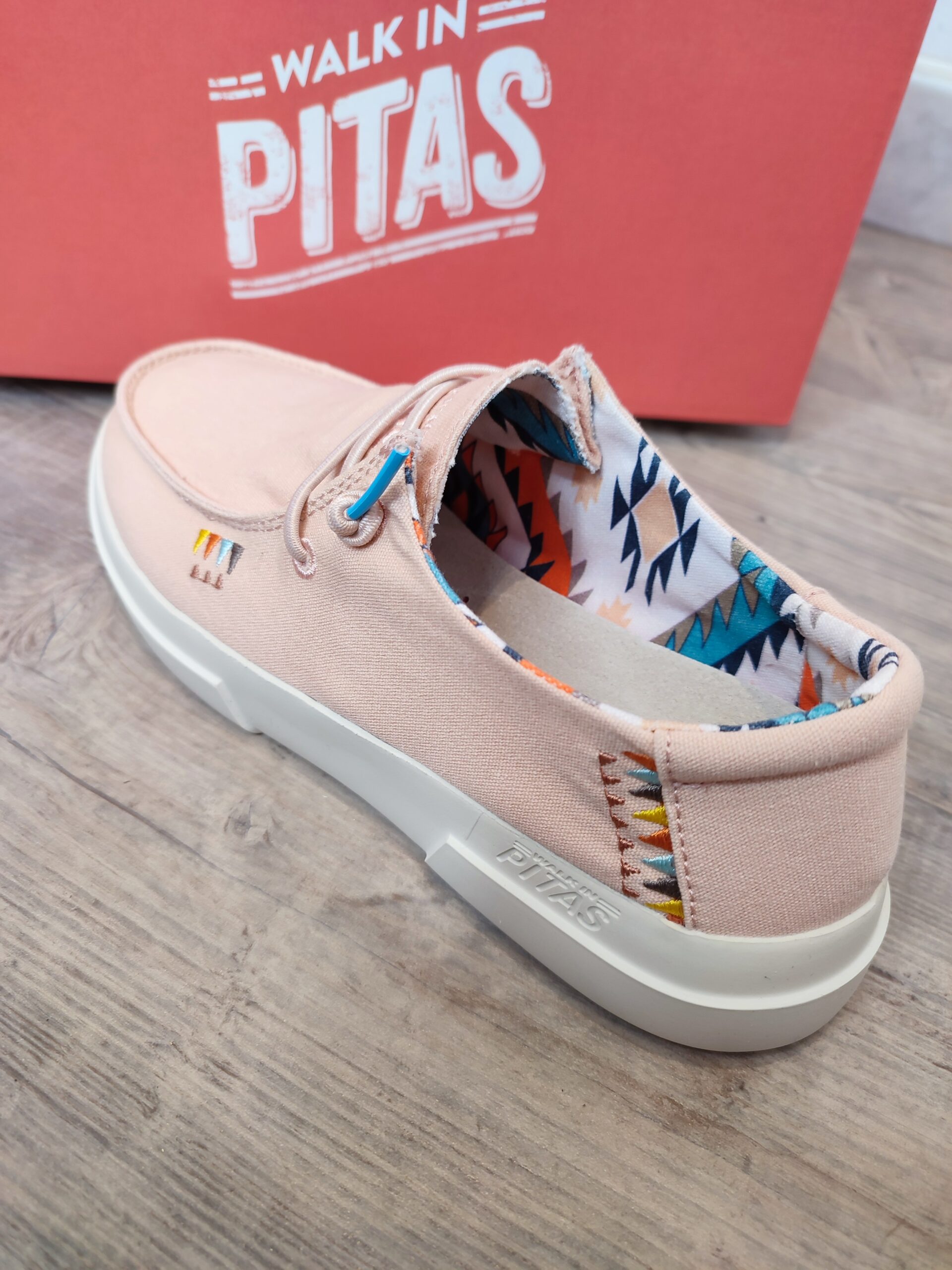 Le wallabi WAYRA de la marque PITAS est fabriqué en toile lavée avec des détails brodés et une doublure intérieure colorée. Il est polyvalent et très léger grâce à sa semelle en EVA, et sa semelle intérieure amovible lui procure un amorti supplémentaire qui le rend particulièrement confortable. Composition: Dessus en textile 100% coton Doublure en textile 100% coton Semelle intérieure en EVA amovible Semelle en EVA ultralégère Lacets élastiques