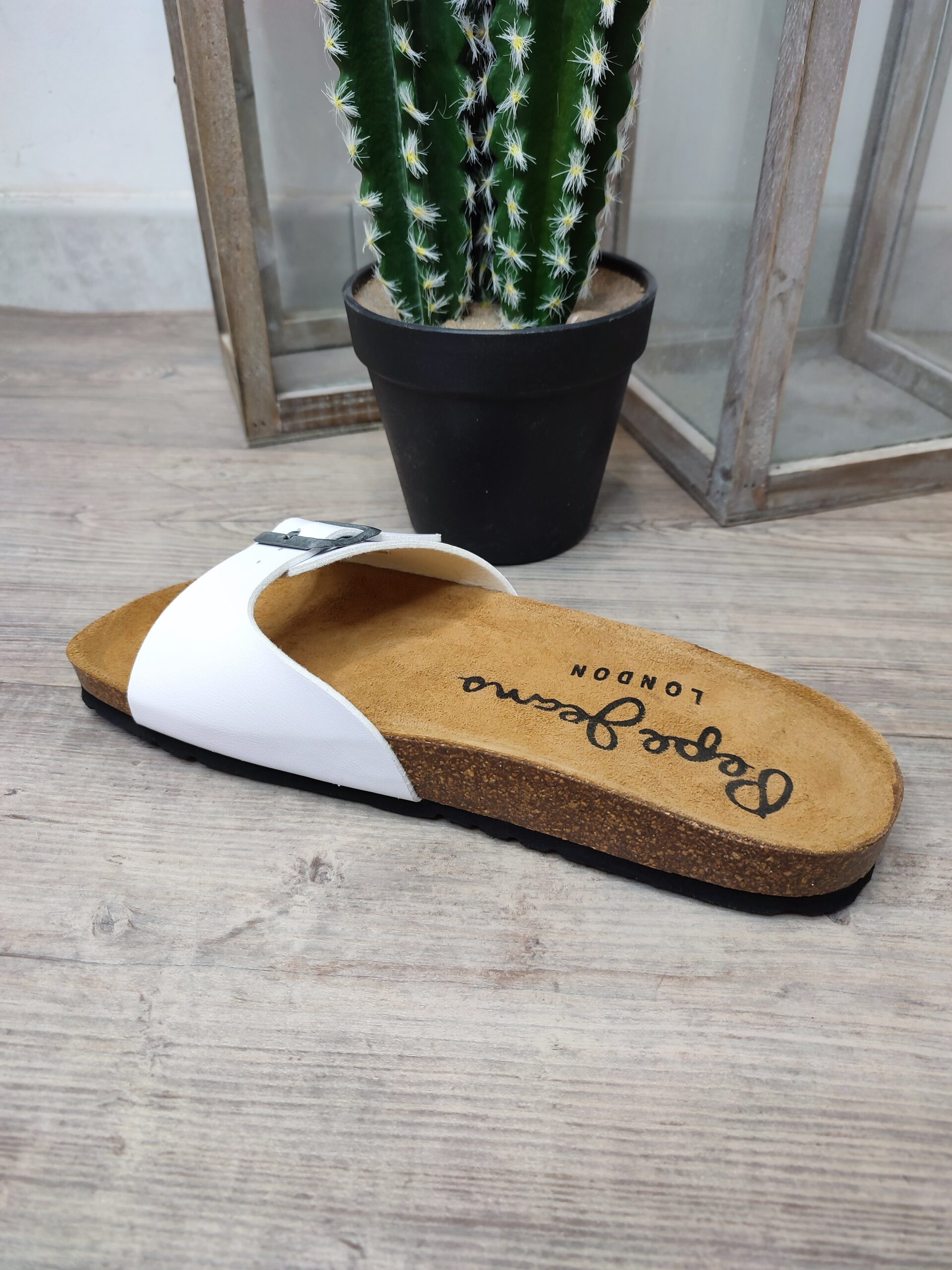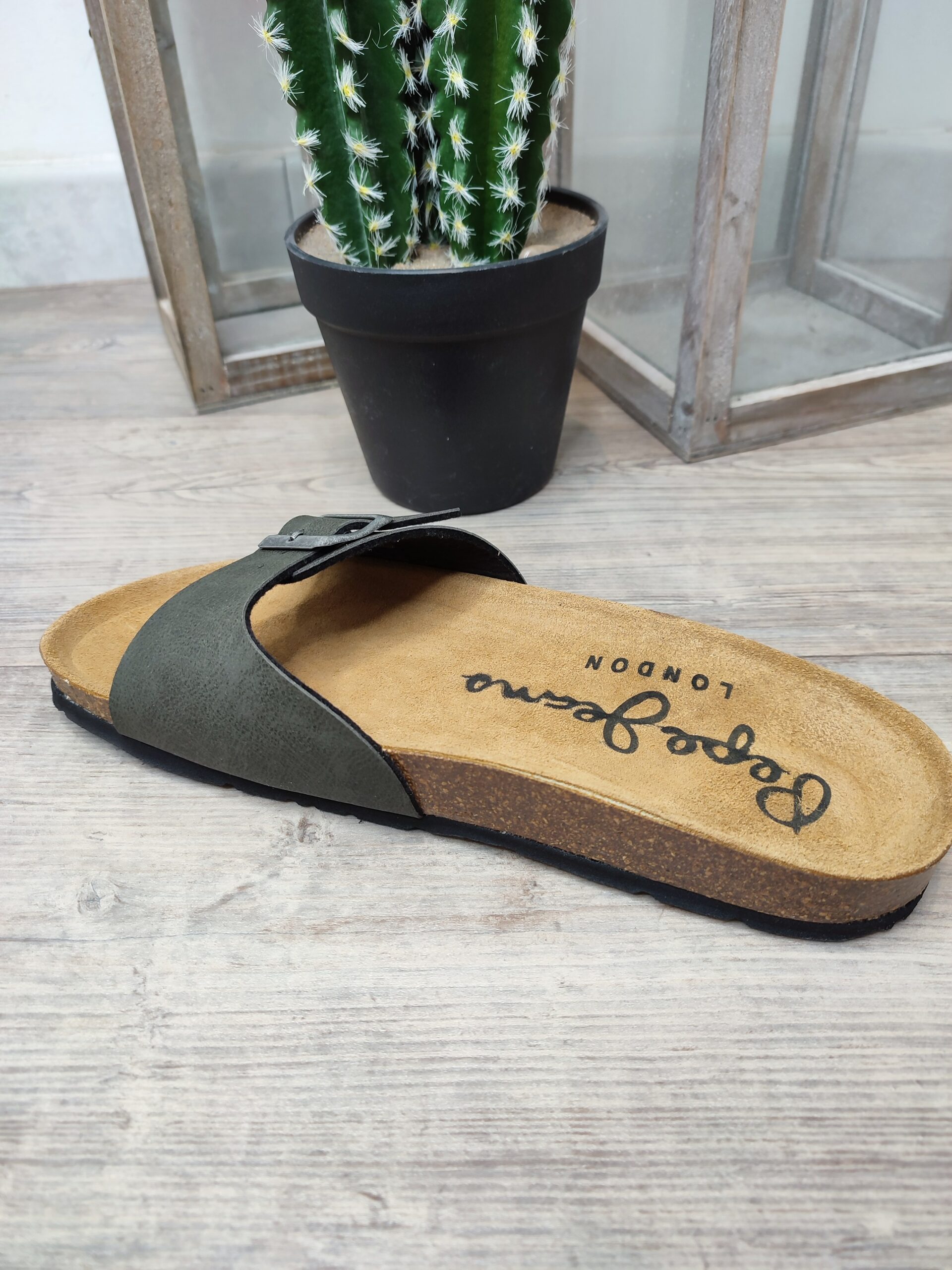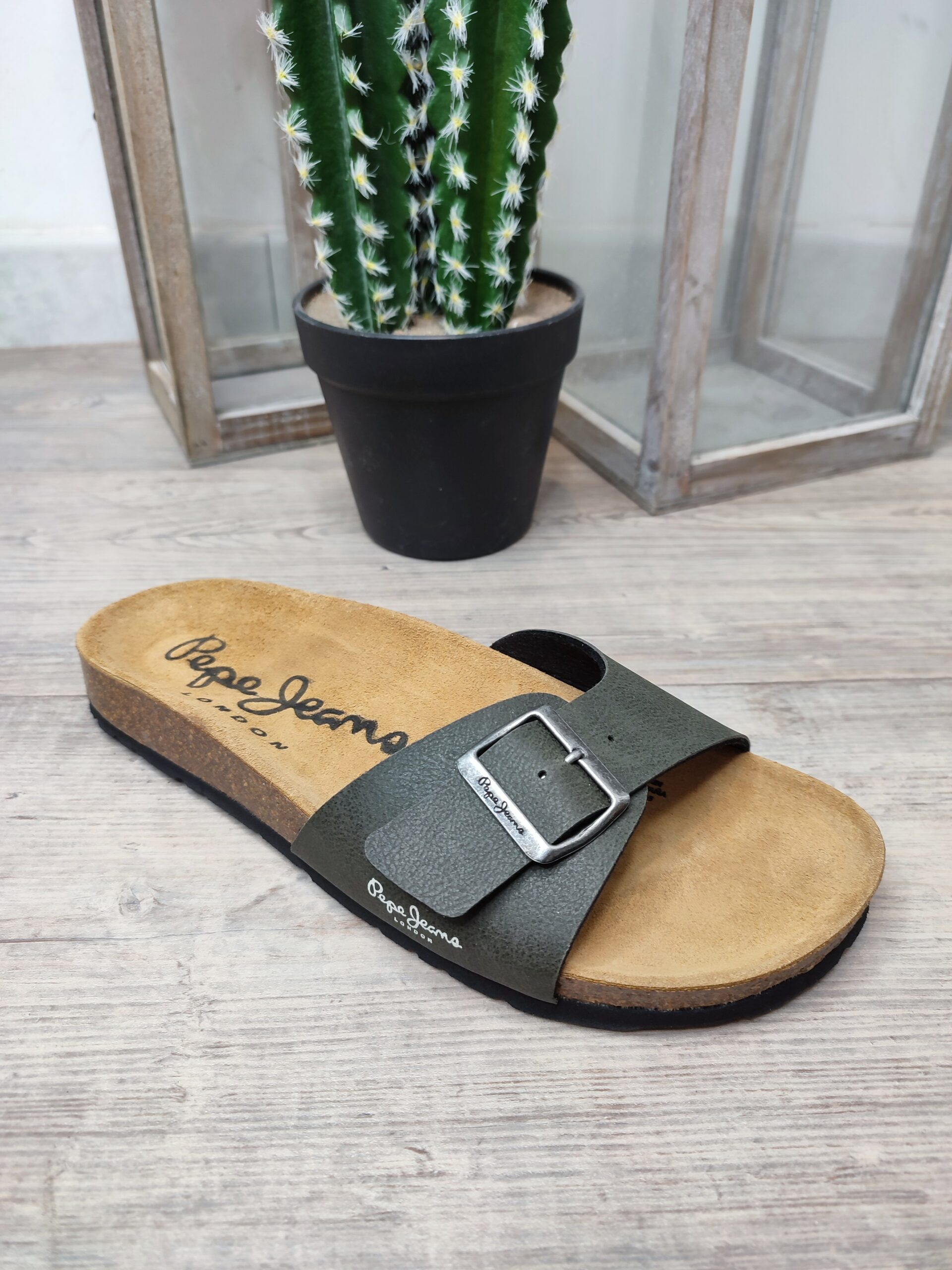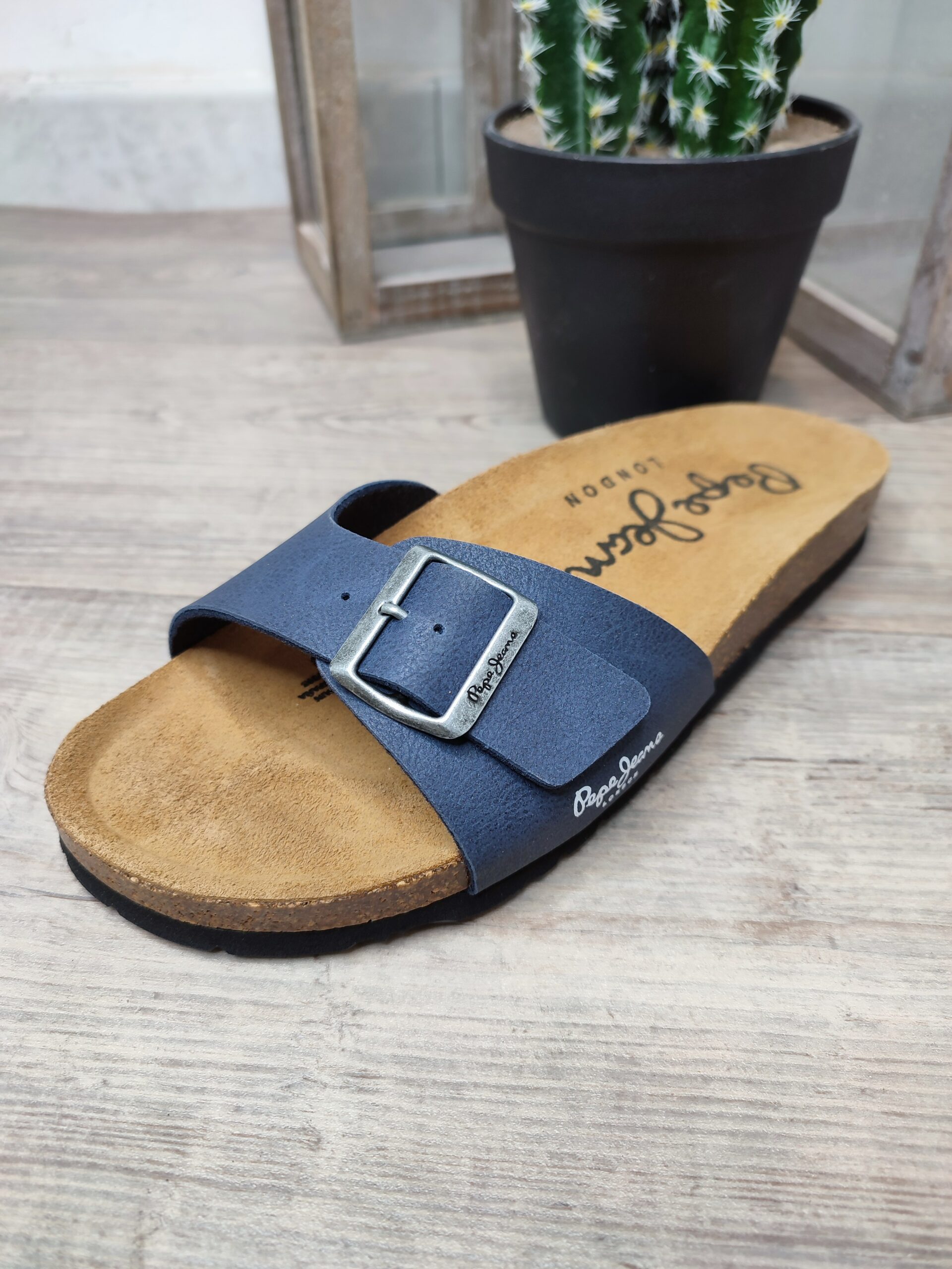 Claquette une boucle de la marque PEPE JEANS. C’est un modèle indispensable l’été!!! Composition: Extérieur: Synthétique. Intérieur: Textile, cuir. Semelle extérieur: Synthétique.