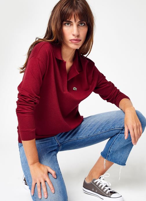 Polo Lacoste femme bordeaux manches longues
