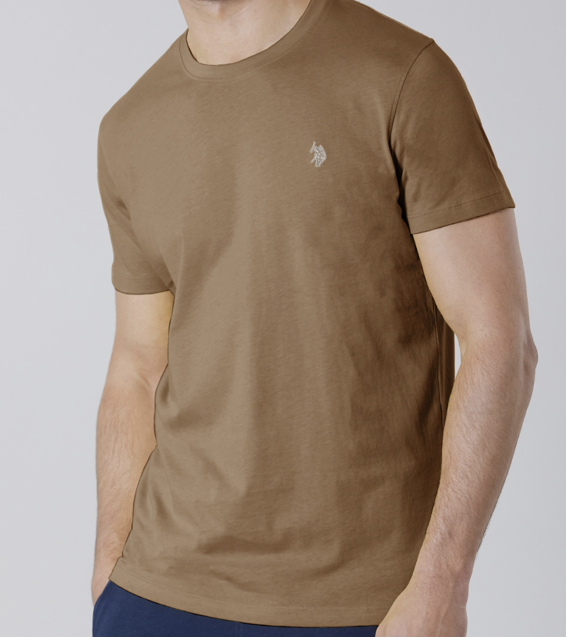 Tee Shirt Marron Clair Homme Us Polo 100% Coton