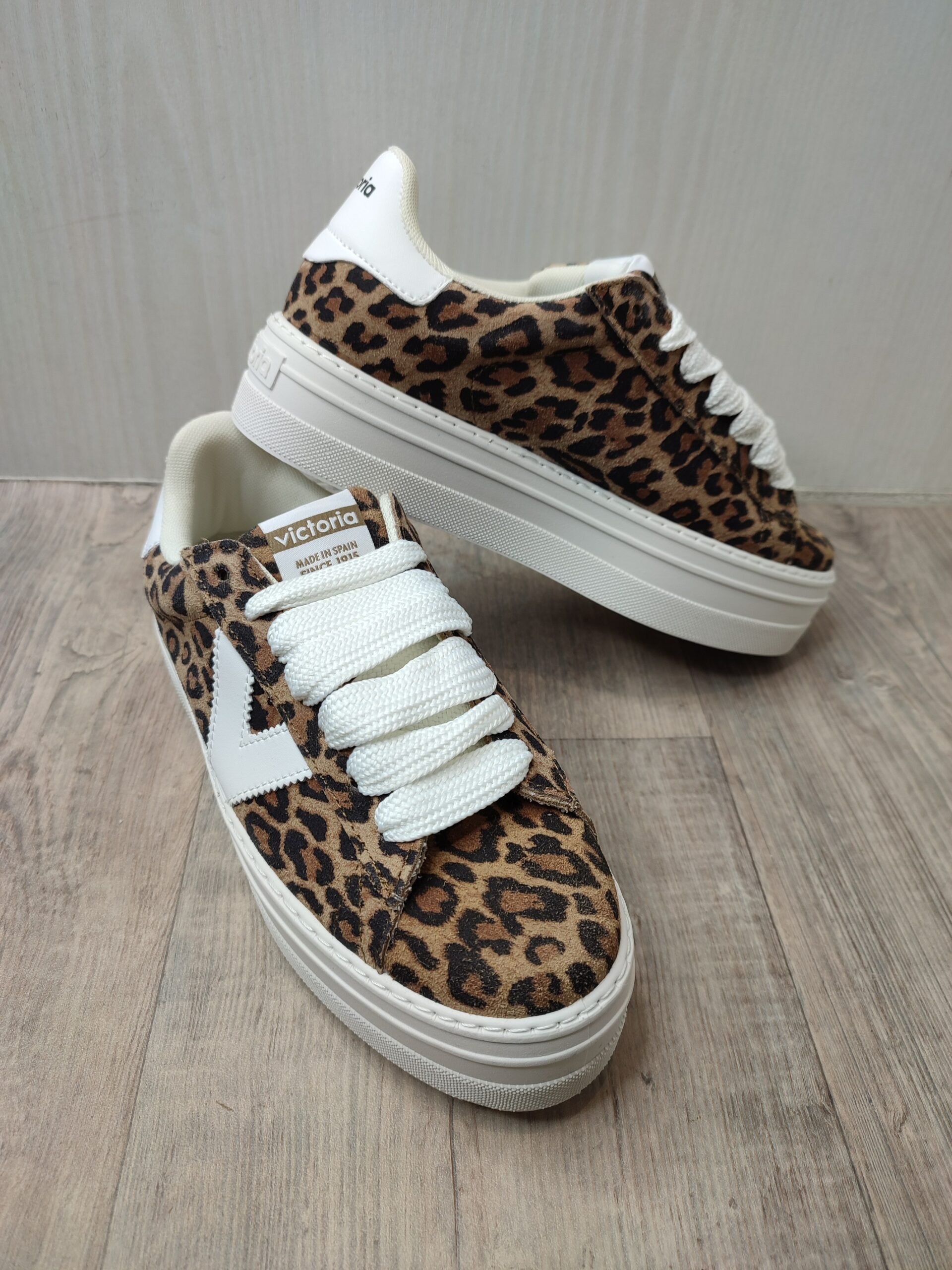 Baskets plateau 092176 de la marque VICTORIA. Matière effet cuir. Imprimé léopard. Semelle de 4 cm. Composition: – Synthétique. – Divers tissus.