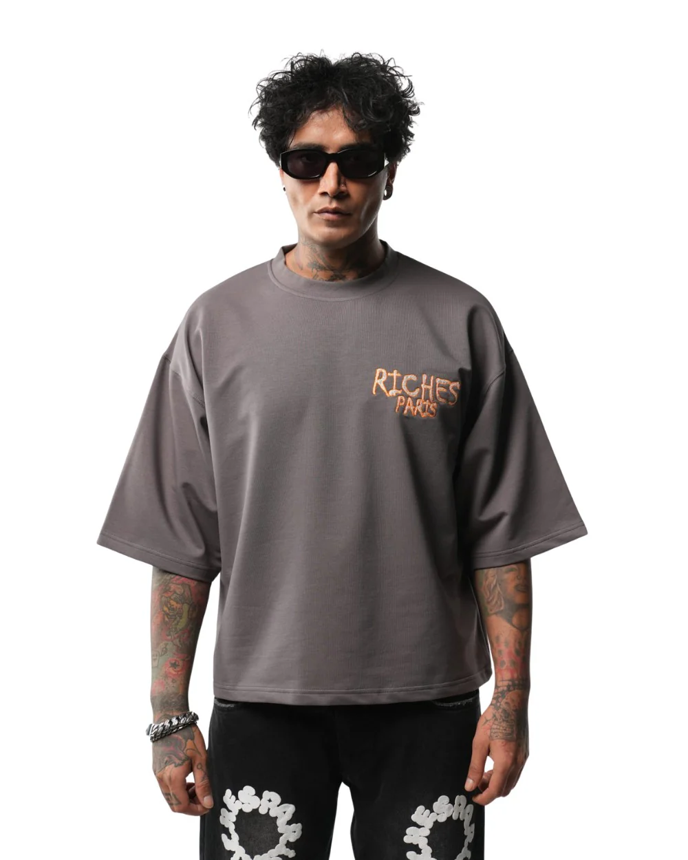 TSHIRT RICHES PARIS CROP DOG GRILLZ GRIS