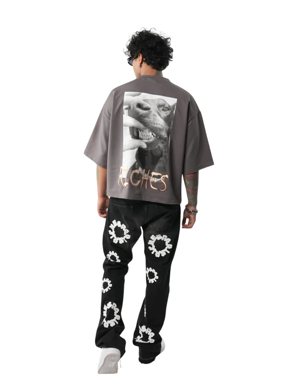 Collection Riches Paris 2025 T-shirt modèle Dog GrillzVisuel et logo à l’avantPatch sur la manche droite TAILLE ET COUPE Coupe légèrement oversizeCe produit taille normalement, prenez votre taille habituelleLe mannequin mesure 1m90 et porte une taille L COMPOSITION ET ENTRETIEN 100% CotonLavable en machine à 30°