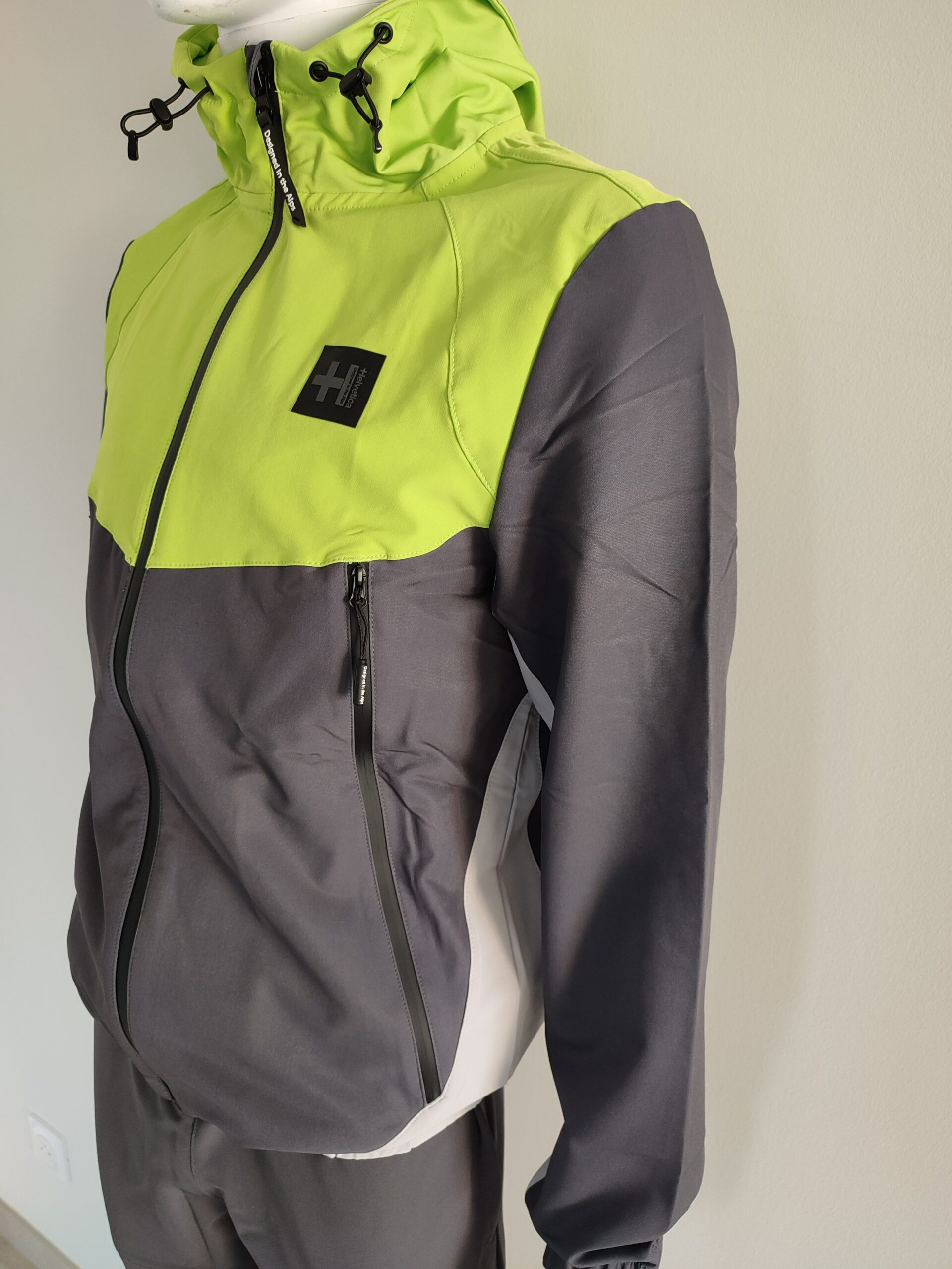 Zipper STANFORD de la marque HELVETICA. Tricolore. Cordon de serrage à la capuche. Grandes poches latérales zippées. Fermeture par zip métallique. Elastique à la taille et aux poignets. Logo Helvetica imprimé sur la poitrine. Composition et entretien: 92% Polyester. 8% Spandex. Consulter l’étiquette avant lavage.
